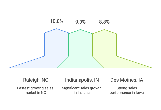 Of the 51 metro areas surveyed in August 2025, the overall number of home sales was down 1.6% compared to August 2024, and down 5.5% compared to July 2025. The markets with the biggest decrease in year-over-year sales percentages were Trenton, NJ at -11.1%, San Diego, CA at -9.4%, and San Francisco, CA at -9.2%. The markets with the biggest increase in year-over-year sales percentages were Raleigh, NC at +10.8%, Indianapolis, IN at +9.0%, and Des Moines, IA at +8.8%.