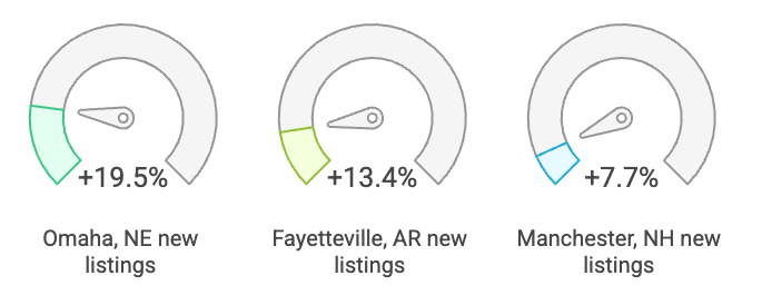 In the 51 metro areas surveyed in August 2025, the number of newly listed homes was down 5.9% compared to August 2024, and down 9.2% compared to July 2025. The markets with the biggest decrease in year-over-year new listings percentage were Trenton, NJ at -44.8%, Dover, DE at -37.9%, and Philadelphia, PA at -37.6%. The markets with the biggest year-over-year increase in new listings percentage were Omaha, NE at +19.5%, Fayetteville, AR at +13.4%, and Manchester, NH at +7.7%.