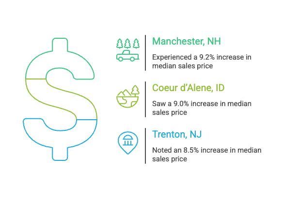 In August 2025, the median of all 51 metro area sales prices was $448,000, up 1.9% from August 2024, and down 0.6% compared to July 2025. The markets with the biggest year-over-year increase in median sales price were Manchester, NH at +9.2%, Coeur d’Alene, ID at +9.0%, and Trenton, NJ at +8.5%. The markets with the biggest year-over-year decrease in median sales price were Bozeman, MT at -4.9%, San Antonio, TX at -4.7%, and Tulsa, OK at -4.3%.