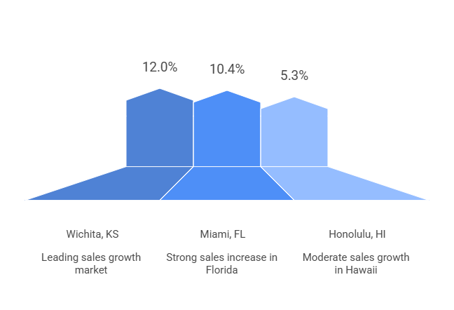 Of the 51 metro areas surveyed in November 2025, the overall number of home sales was down 4.7% compared to November 2024, and down 18.5% compared to October 2025. The markets with the biggest decrease in year-over-year sales percentage were San Antonio, TX at -22.9%, Bozeman, MT at -15.7%, and Anchorage, AK at -13.5%. The markets with the biggest increase in year-over-year sales percentages were Wichita, KS at +12.0%, Miami, FL at +10.4%, and Honolulu, HI at +5.3%.