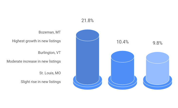 In the 51 metro areas surveyed in November 2025, the number of newly listed homes was down 8.3% compared to November 2024, and down 30.7% compared to October 2025. The markets with the biggest decrease in year-over-year new listings percentage were Dover, DE at -48.6%, Trenton, NJ at -48.3%, and Washington, DC at -45.2%. The markets with the biggest year-over-year increase in new listings percentage were Bozeman, MT at +21.8%, Burlington, VT at +10.4%, and St. Louis, MO at +9.8%